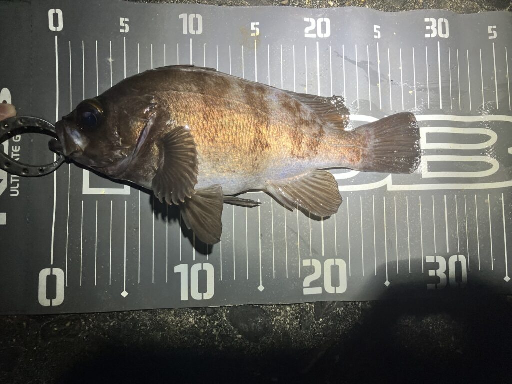 23:20、25cm無いくらいの少し小ぶりなメバル。