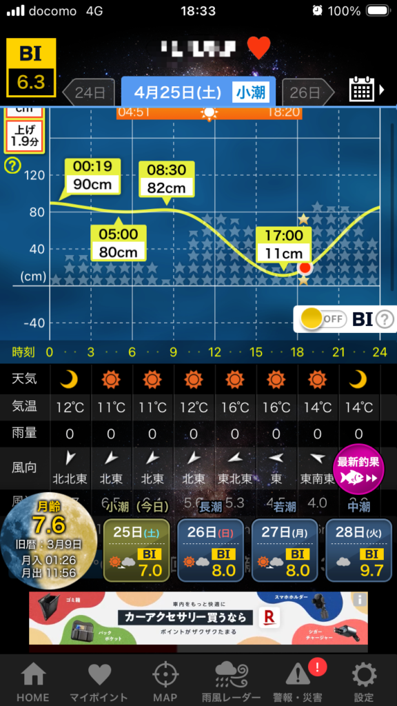 小潮ですが、夕マヅメの辺りから上潮で大きく潮が動きます。そしてちょうど夕マヅメからの釣行です。笑